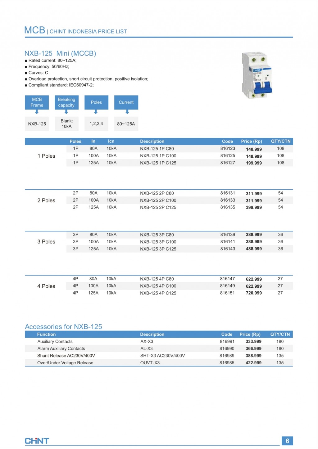 CHINT, Miniature Circuit Breaker (MCB) - NXB-125