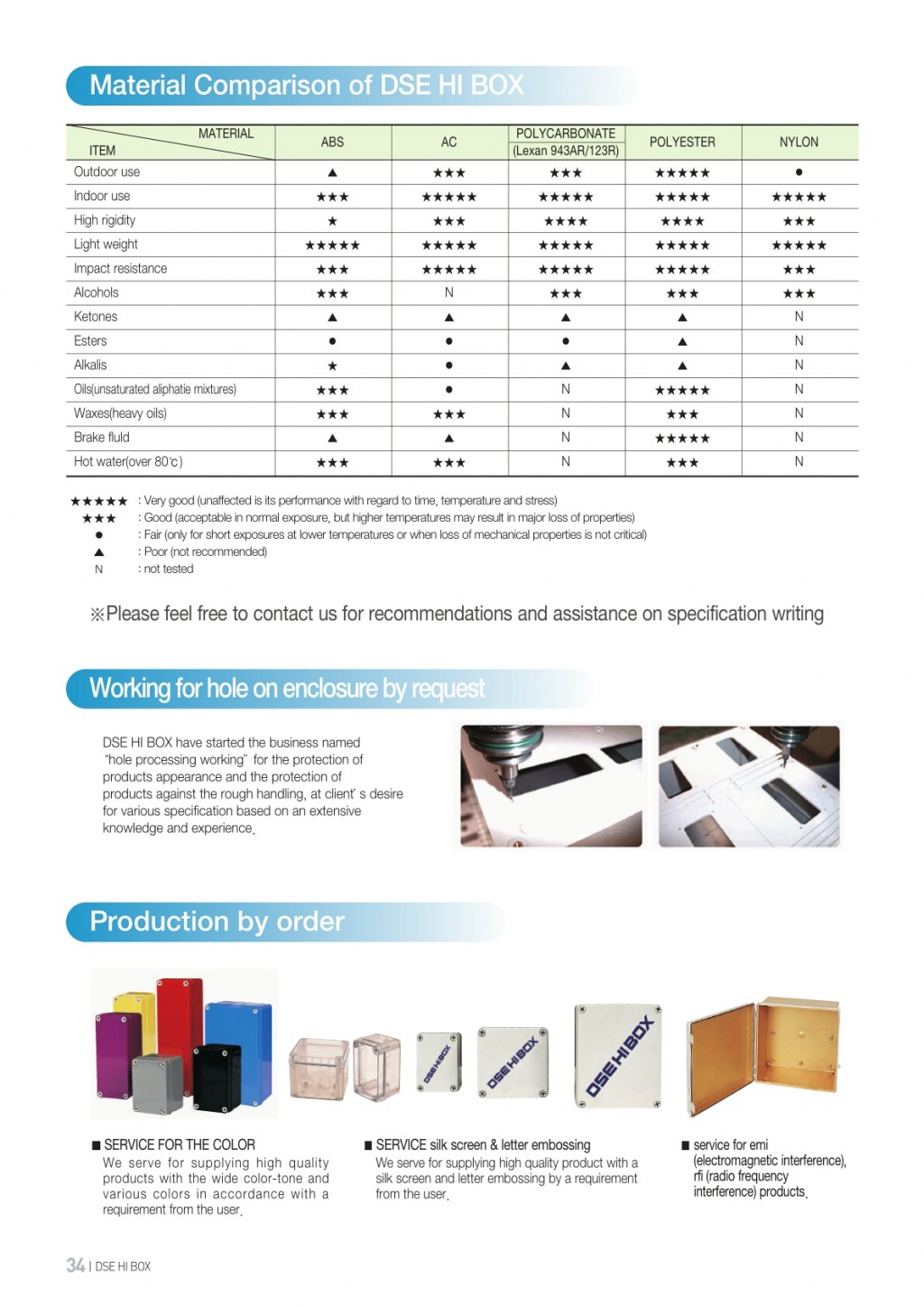 DSE HIBOX, Material Comparison of DSE HI BOX