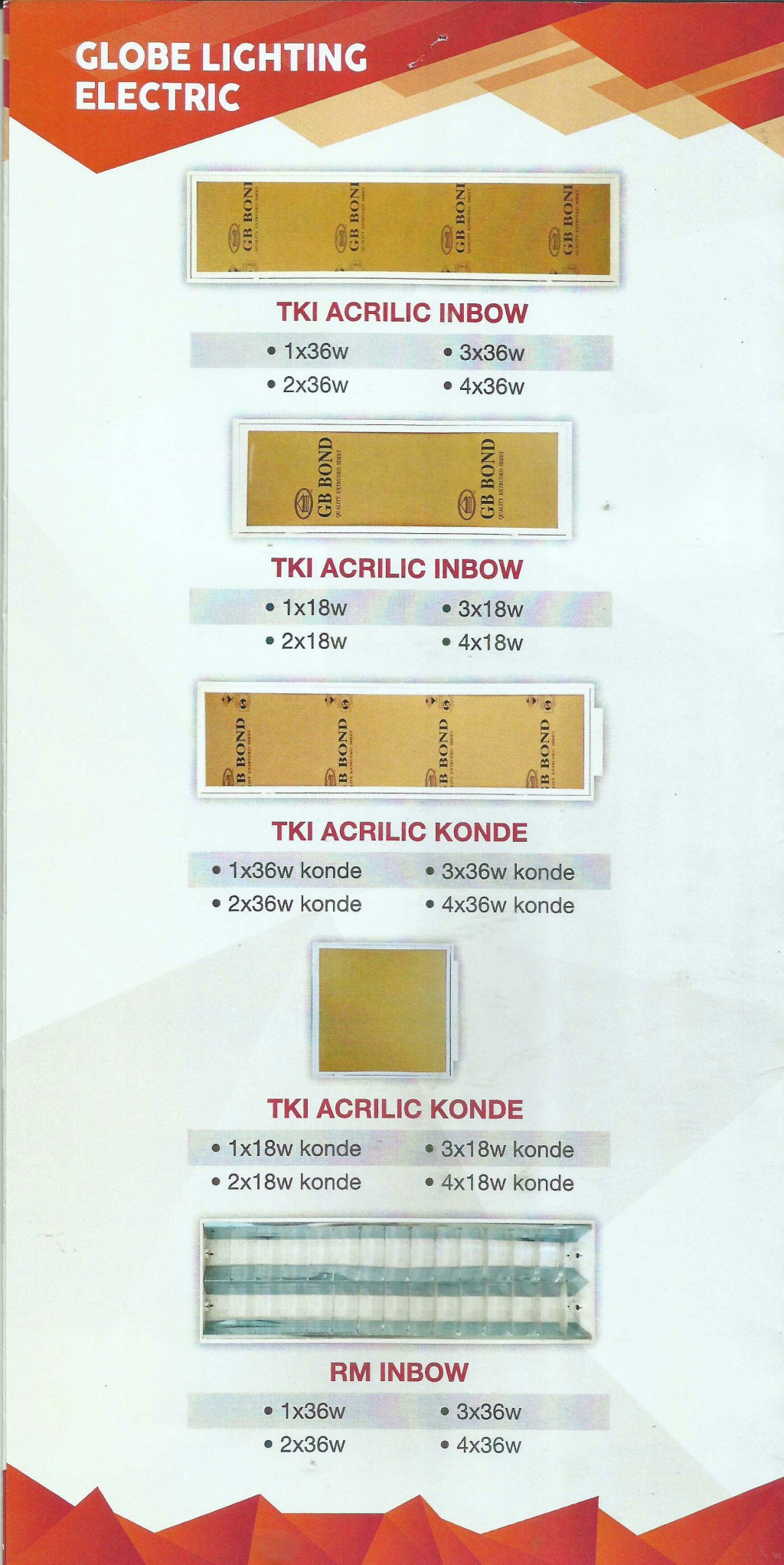 GLOBE LIGHTING ELECTRIC, TKI Acrilic Inbow, TKI Acrilic Konde, RM Inbow