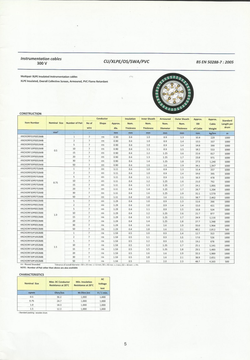 KABEL, INSTRUMENTATION CABLE JEMBO, Multipair CU/XLPE/OS/SWA/PVC - 300V