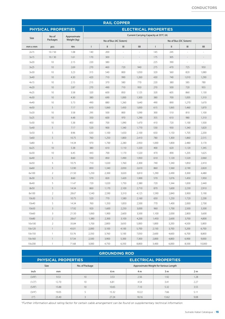 KABEL, SUTRADO, Rail Copper & Grounding Rod - Physical & Electrical Properties