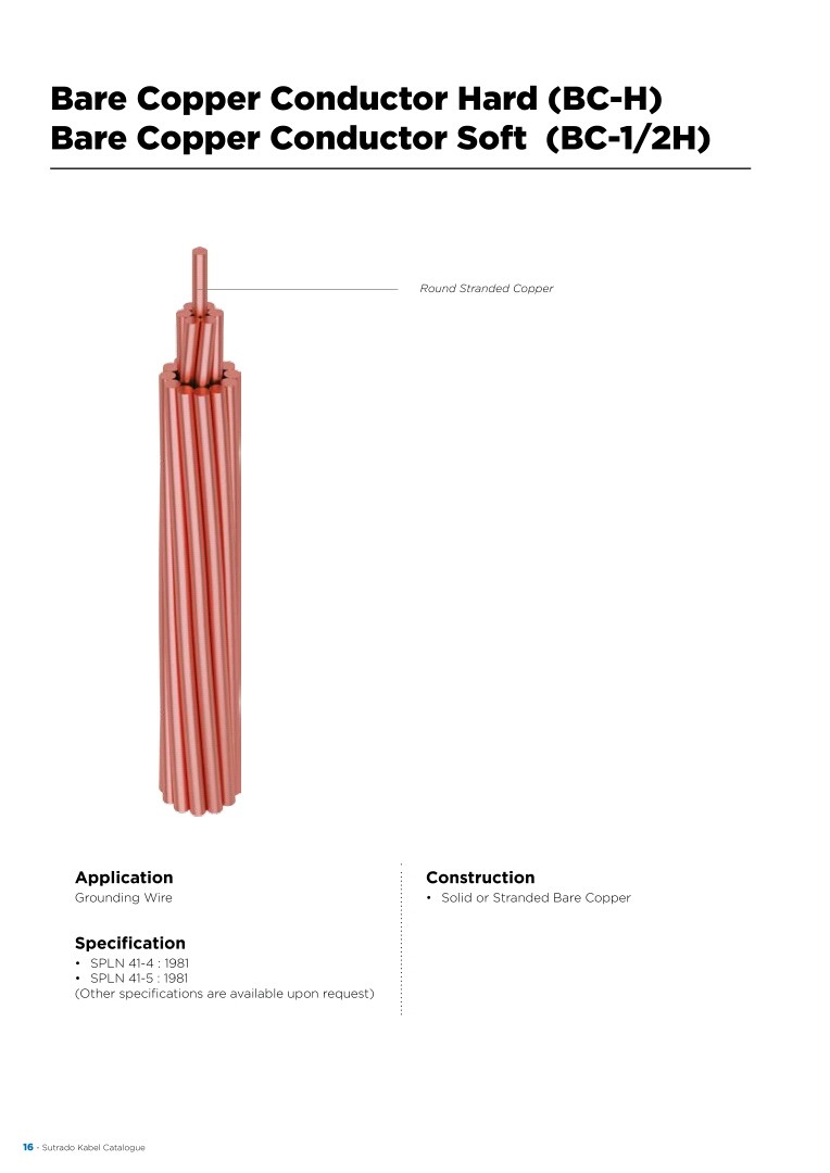 KABEL, SUTRADO, Conductors - Bare Copper Conductor Hard (BC-H) & Bare Copper Conductor Soft (BCC-1/2H)