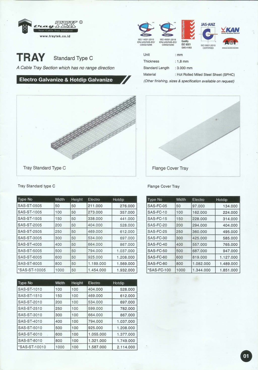 TRAYTEK, Tray Standard Type C - Electro Galvanize & Hotdip Galvanize
