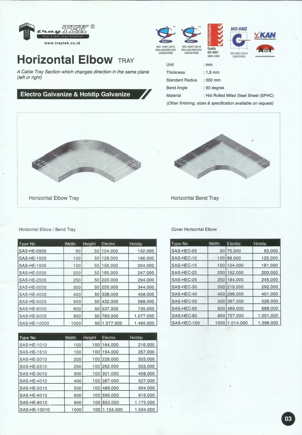 TRAYTEK, Horizontal Elbow Tray - Electro Galvanize & Hotdip Galvanize