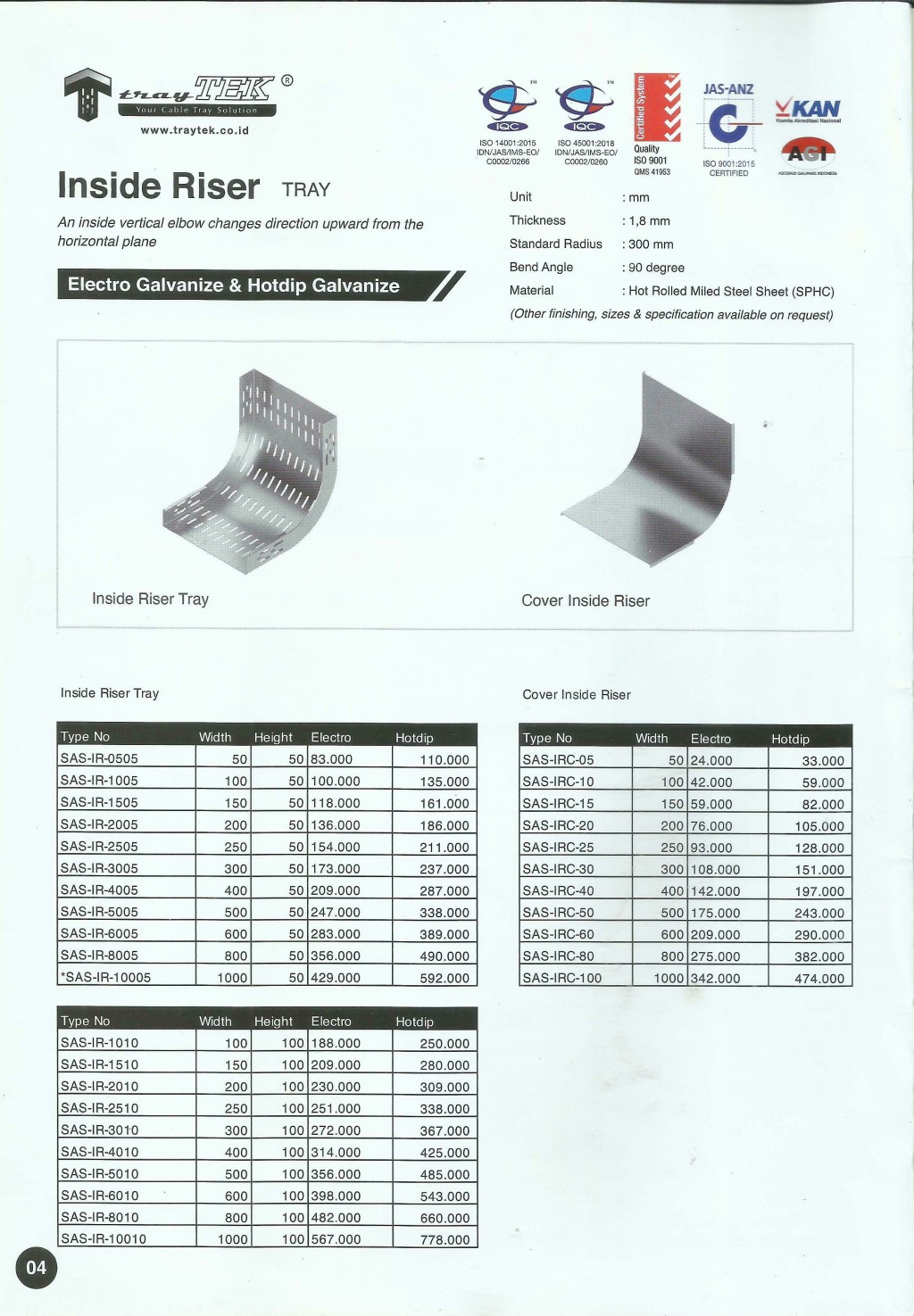 TRAYTEK, Inside Riser Tray - Electro Galvanize & Hotdip Galvanize