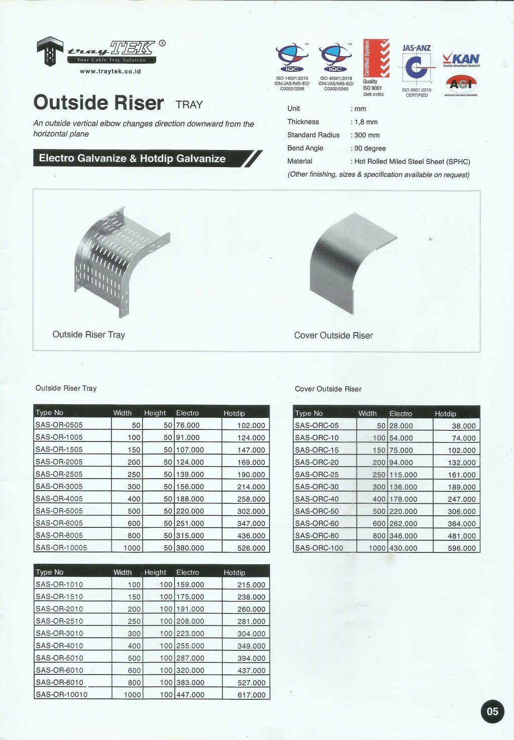 TRAYTEK, Outside Riser Tray - Electro Galvanize & Hotdip Galvanize